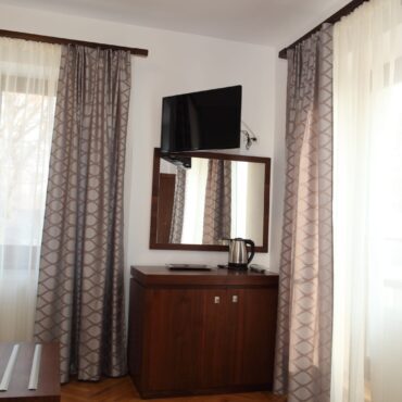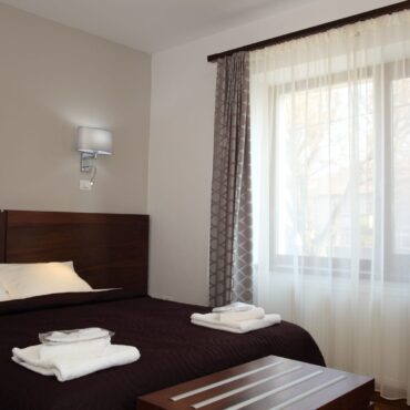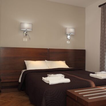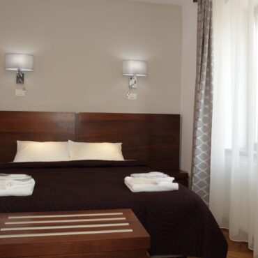 Our double rooms are spacious, comfortable and suitable for couple accommodation. The rooms are designed in contemporary style, ensuring the relaxation and comfort of our guests. Each room is furbished with a mini-bar and a coffee machine, TV, Wi-fi access. Welcome to our place!