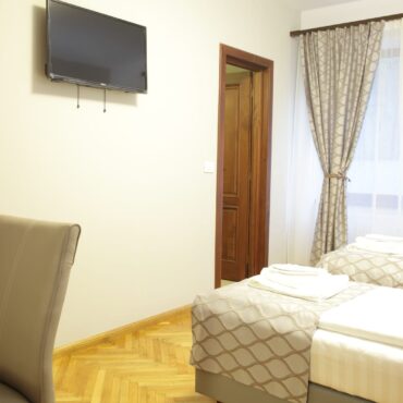 Our double rooms are spacious, comfortable and suitable for couple accommodation. The rooms are designed in contemporary style, ensuring the relaxation and comfort of our guests. Each room is furbished with a mini-bar and a coffee machine, TV, Wi-fi access.